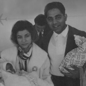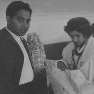 1963 February. Faran Tahir was born at the UCLA hospital. Yasmin holding him in the cot and, proud father Naeem