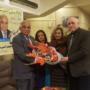 Aap Ki Tareef. Yasmin Tahir and Mohsin Rizvi completed full 100 performances. Javed Qureshi Chief Secy Punjab offerring flowere.